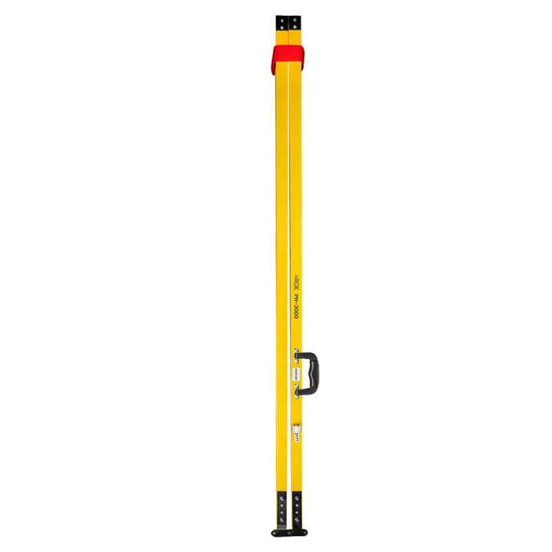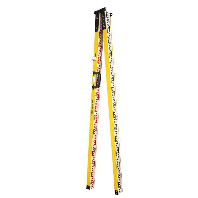 Складная двухсторонняя деревянная рейка RGK РН 3000 выполнена по классической схеме из двух шарнирно соединенных брусьев, которые окантованы планками и снабжены металлическими пятками, защищающими торцы от истирания. Высота рейки составляет 3 метра. В рабочем положении изделие раскладывается в прямую линию, позволяя считывать показания с шашечных E-шкал с лицевой и тыльной стороны, обеспечивая измерение превышений путем выполнения серии замеров с помощью оптических нивелиров.