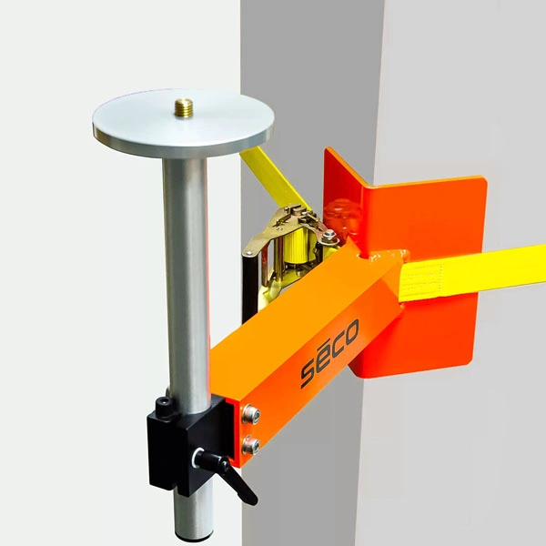 Специализированное крепление Seco 4852-16 для установки оборудования на квадратные или круглые колонны. Фиксирующий ремень длиной 3 метра удерживает систему с помощью храпового механизма. Регулируемая стойка вращается и перемещается вертикально для ориентации инструмента в диапазоне 30 см. Расстояние от оси стойки до колонны составляет 38 см. Вес конструкции 6,2 кг.