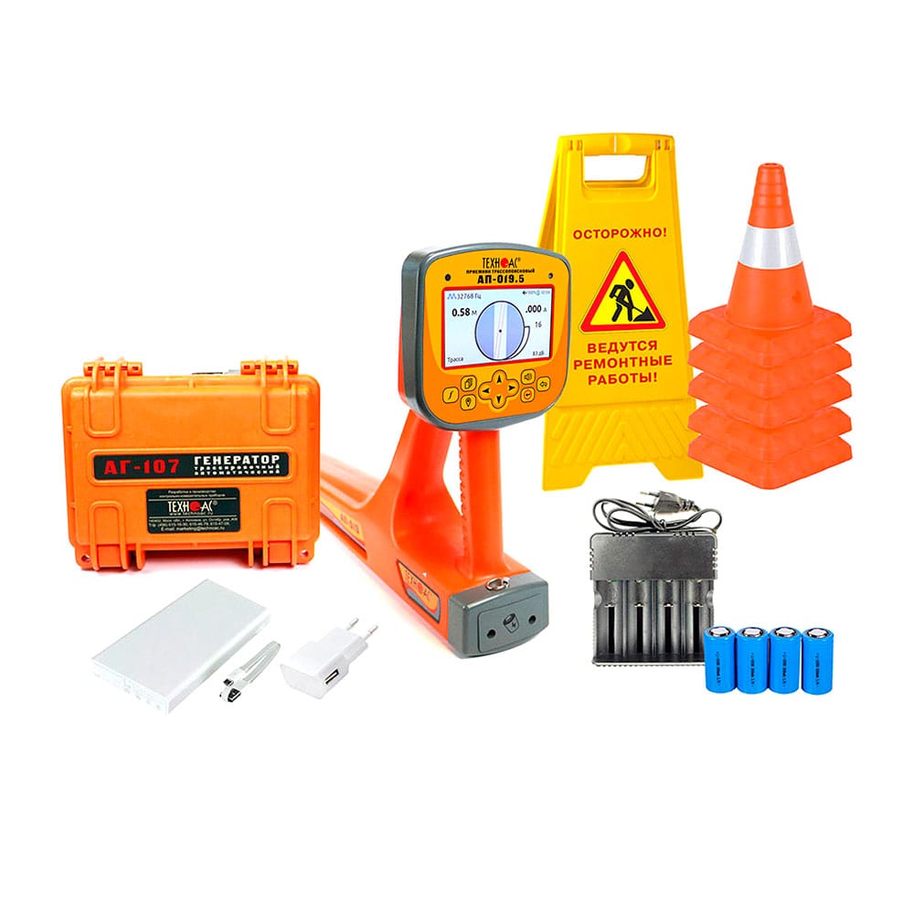 Комплект оснащен новейшим компактным автономным генератором АГ-107 мощностью 60 Вт со встроенными элементами питания, дисплеем и встроенной индукционной антенной, для трассировки коммуникации бесконтактным способом.